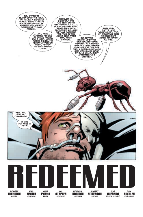 Face-to-face with Mitch Carson, the agent he horribly scarred during his initial escape from S.H.I.E.L.D. and currently in S.H.I.E.L.D. custody–Eric O’Grady is in a bit of a pickle. How will he get out of this one? Surely it will involve Ant-Man’s distinct brand of irredeemable trickery and deceit that everyone has grown to know and love.