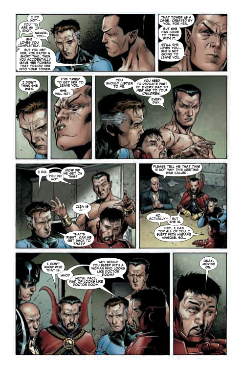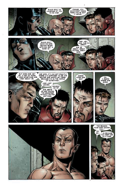 I agree about the non-heroic part but it was also great to see that conversation. I don’t know if I liked Namor and Reed finally getting it out in the open about Sue or the line ‘Black Bolt is laughing at you in his mind’.