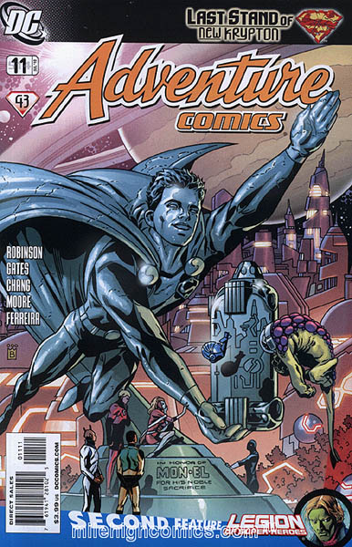 Adventure Comics #11/#514: As disappointed as I was that Mon-El wasn’t actually going to be a part of the new Justice League after all, this issue reminds me what I liked about the character in the first place. As in the Archie Legion, Mon has been destined to found many of the worlds of the 30th Century Legion, and this issue shows how it gets done. (Hint: Brainiac shrunk more cities than just Kandor.) It’s a nice look at what Mon-El really means to the Legion, and ends with him entering the Phantom Zone once more, only to get pulled out by Superboy in the 30th Century. There’s lots of continuity stuff in this issue, including the Espionage Squad preparing to return home, and Brainiac 5 face to face with Brainiac himself. I’m gladdened to see the LSH returning to this title, and the return to original series numbering isn’t a bad idea, either. (I maintain that they should have just done that from the beginnning, anyway…) There’s a lot of good stuff happening here, and it puts a nice cap on the Legion portion of the Superman titles for the last few years. If I were Rodrigo, I’d say “Aaaand I liked it!” 4 stars.