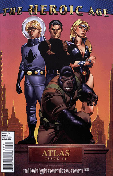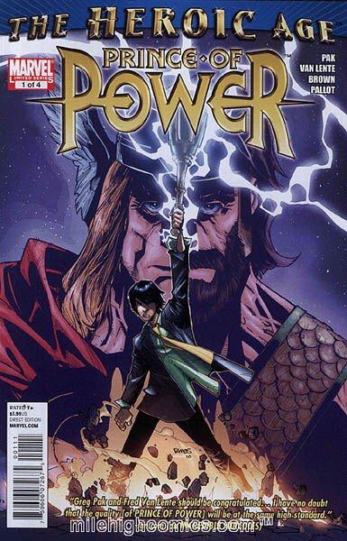 Heroic Age – Prince of Power #1 (of 4): Man, Humberto Ramos gets around, doesn’t he? The cover art doesn’t look anything like the interiors either. I supposed I can stop whining that whine, though… Hercules is gone, but not forgotten, and Amadeus Cho and Bruce Banner have dedicated nearly everything (to the tune of 634 billion dollars) to try and find him. There’s bad news there, as well as in Amadeus relationship with Delphyne the Gorgon, and some old-school Peter David continuity ends up with Amadeus framed and Thor angry. Add to that Athena’s meeting with her fellow all-fathers, and you’ve got a pretty interesting overall tale. I love what Pak and Van Lente have done with Incredible Hercules so far, and the setup for this series is interesting. I’m unsure as to what happens at the end of this mini, but I’m torn as to whether I want Hercules to come back this quickly or not. Either way, it’s a fun ride through portions of the Marvel Universe that don’t get a lot of of play lately, and it’s got an interesting cliffhanger ending. (Will a forcefield and adamantine mace survive the hammer of Thor?) 4 stars.