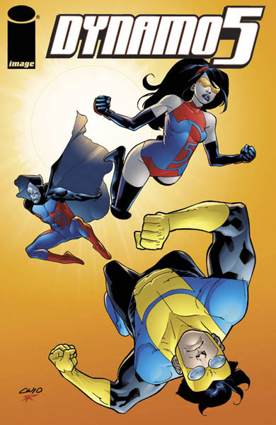 Previously on Dynamo 5 – Sins Of The Father: The Image universe is a very flexible place, and even though Youngblood teamed up with Spawn teamed up with Witchblade teamed up with Invincible teamed up with the Savage Dragon teamed up with Proof, there’s no real guarantee that the various crossovers actually happened on the same Earth. Even so, several years ago (comics time) an alien invasion led to Captain Dynamo teaming up with Omni-Man (the father of Invincible) and Supreme (Rob Liefeld’s favorite pizza topping) in a friendly rivalry about who REALLY is Earth’s protector. Years later, the aliens have returned, causing Omni-Man’s son, Captain Dynamo’s five children, the daughter of the heroine called Firebird and the Savage Dragon’s two kids to pick up where the adults left off. Their results have been mixed at best, leaving the Foundation for Law and Government (F.L.A.G.) to call in their own heroes to pick up the slack…