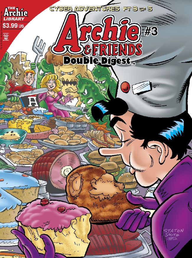 The Food Strikes Back! Archie continues his search for his friends lost in the Wonder Realm and makes a shocking discovery! Jughead is not only living in a city made of food, but he has become king of the Food People! That is, until Archie reveals Jughead’s true nature…