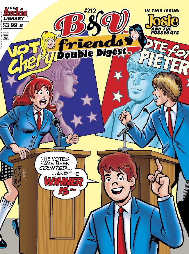 In “Time for Trouble,” Archie and Jughead hold an ultimate wrestling match in Veronica’s house. But the loser of the match is Mr. Lodge’s priceless antique clock! Next, in “Not Board at All,” ever-klutzy Archie turns a slip while waiting tables into an award-winning snowboard performance without a snowboard! Finally, how could a “Drip Drip Drip” sound drive Mr. Andrews to destroy his house? Wait until you see what is causing the drip!