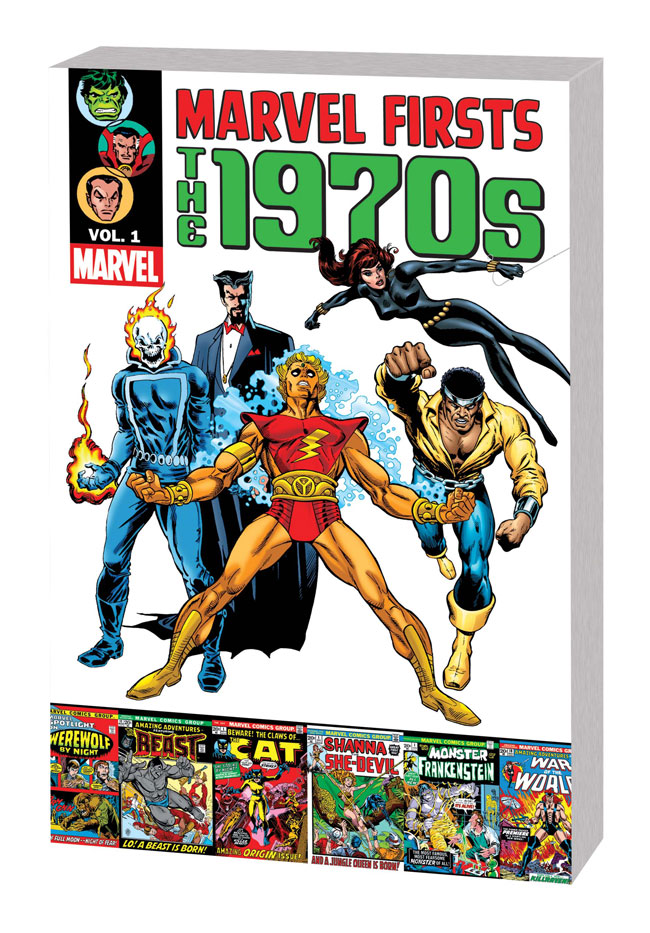 When the swingin’ seventies exploded on the scene in all of their grandiose glory, Marvel Comics was there to welcome them with a host of new characters and titles! Assembled in one volume for the first time are the fabulous first issues of dozens of Marvel’s seventies stalwarts — including the likes of Dracula, Man-Thing, Luke Cage, and Tigra — not to mention such solo breakouts as the Black Widow and the Beast. Westerns, war, sci-fi, super heroes, monsters and mutants — all these and more are here at your fingertips, reprinted for your reading pleasure!