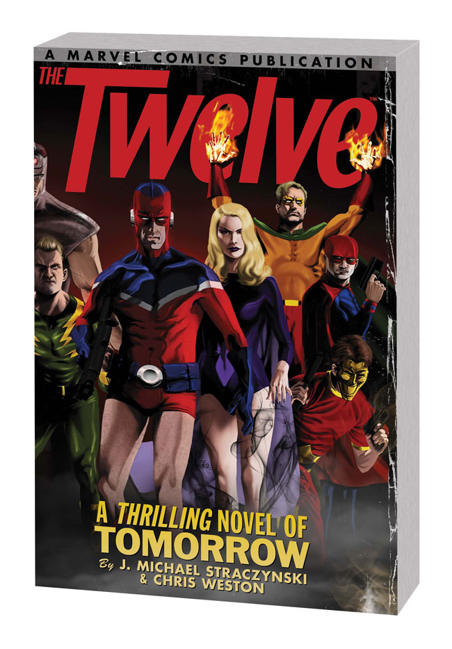 Yesterday’s Men of Tomorrow — today! The Phantom Reporter. Electro. The Black Widow. The Laughing Mask. The Blue Blade. Dynamic Man. Master Mind Excello. Mister E. The Fiery Mask. The Witness. Rockman. Captain Wonder. Laying dormant for sixty years, they awaken in a tormented world that needs them more than ever. But has the world grown beyond their brand of old-fashioned heroism? Writer J. Michael Stracyzynski (TV’s Babylon 5, THOR) and artist Chris Weston (The Invisibles, FANTASTIC FOUR: THE FIRST FAMILY) present the first half of this post-modernist tale of sacrifice, betrayal and human nature. Collecting THE TWELVE #1-6.