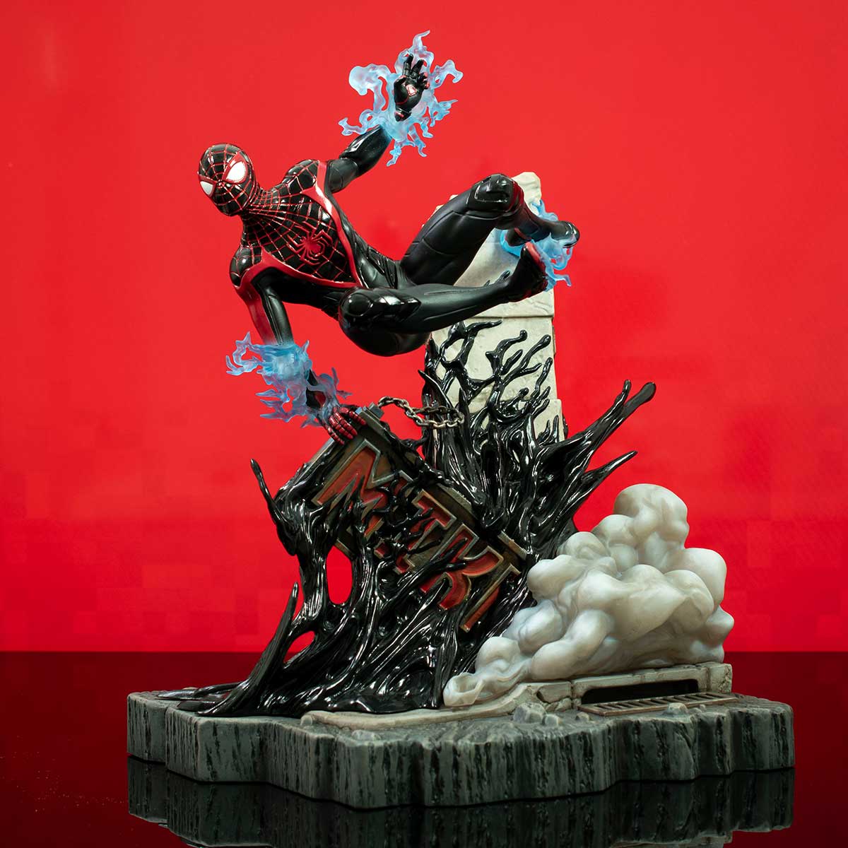 A Diamond Select Toys release! From the hit video game Spider-Man 2, it’s Miles Morales in an all-new Gallery Diorama! Leaping over a falling sign as the Venom symbiote oozes over it, Miles charges up energy blasts to take on the alien villain! This approximately 10-inch statue is made out of high-quality PVC and features detailed sculpting and paint applications. It comes packaged in a full-color window box. Designed by Nelson X. Asencio, sculpted by John Cleary! SRP: $80.00