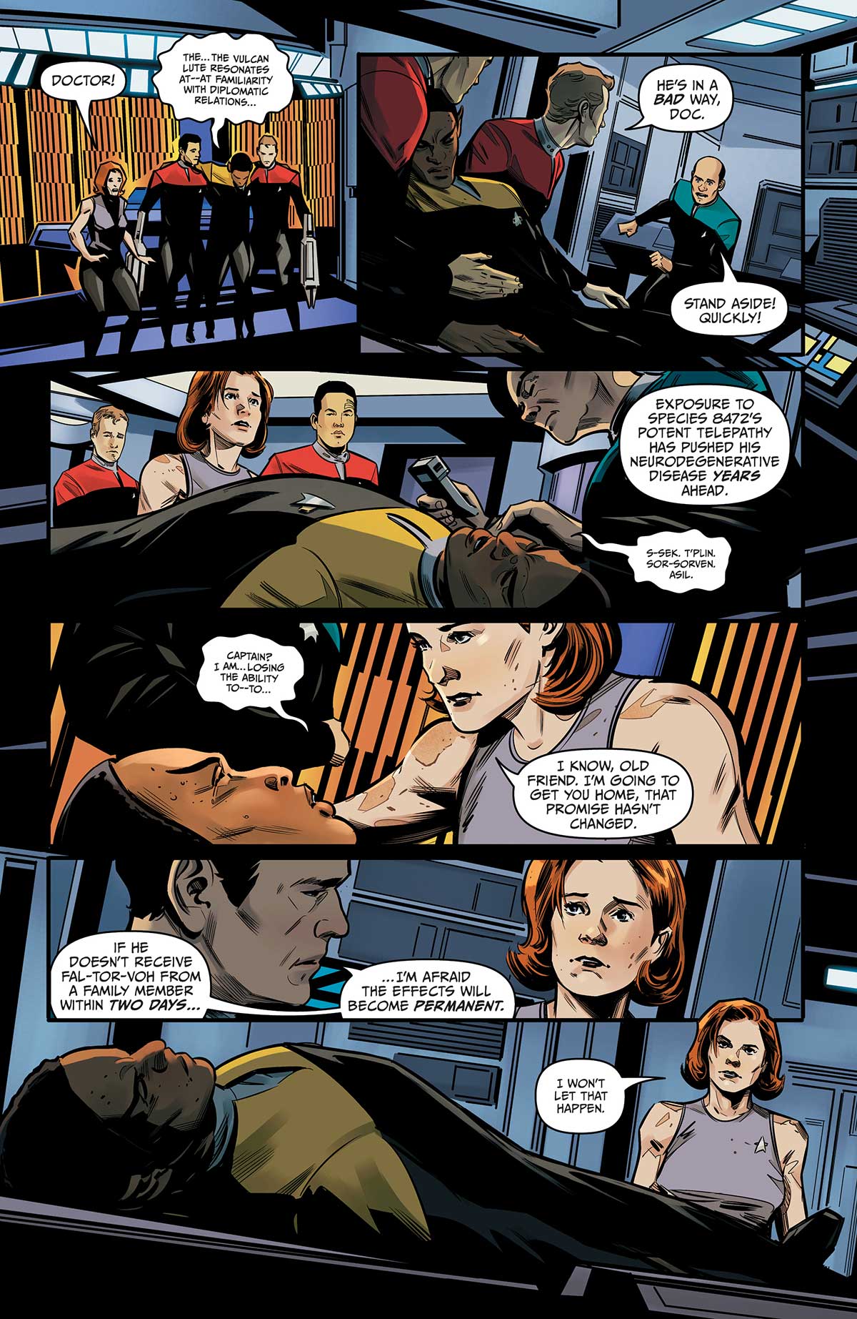 Moments before returning to Earth, the crew of Voyager are betrayed by insurgents hidden on board! With her ship’s deflector dish broken and the ship itself out of her control, Janeway must convince the aliens that Starfleet means them no harm if she’s ever going to get her found family home. If that weren’t enough to handle, there’s a ticking clock to contend with: Tuvok’s disease has accelerated, and he must get home to mind-meld with a family member to cure himself with Fal-tor-voh… before it’s too late!