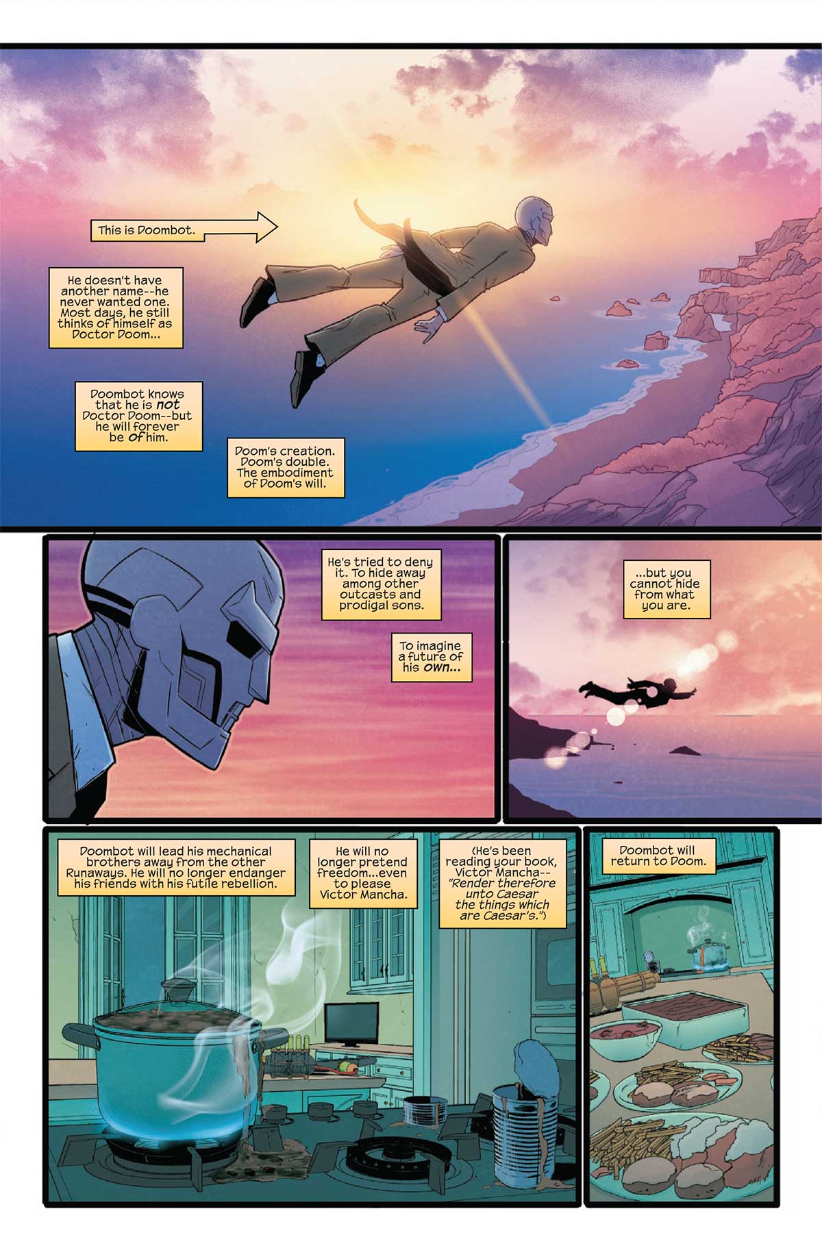 Will Alex and the Runaways be able to put aside their differences and make peace in the face of DOOM? Will Karolina have a change of heart about the Staff of One when the chips are down? Will Chase be able to look past his anger at Gert? AND WHAT DOES THE FUTURE HOLD FOR THE RUNAWAYS? All this and more in the heartbreaking finale!