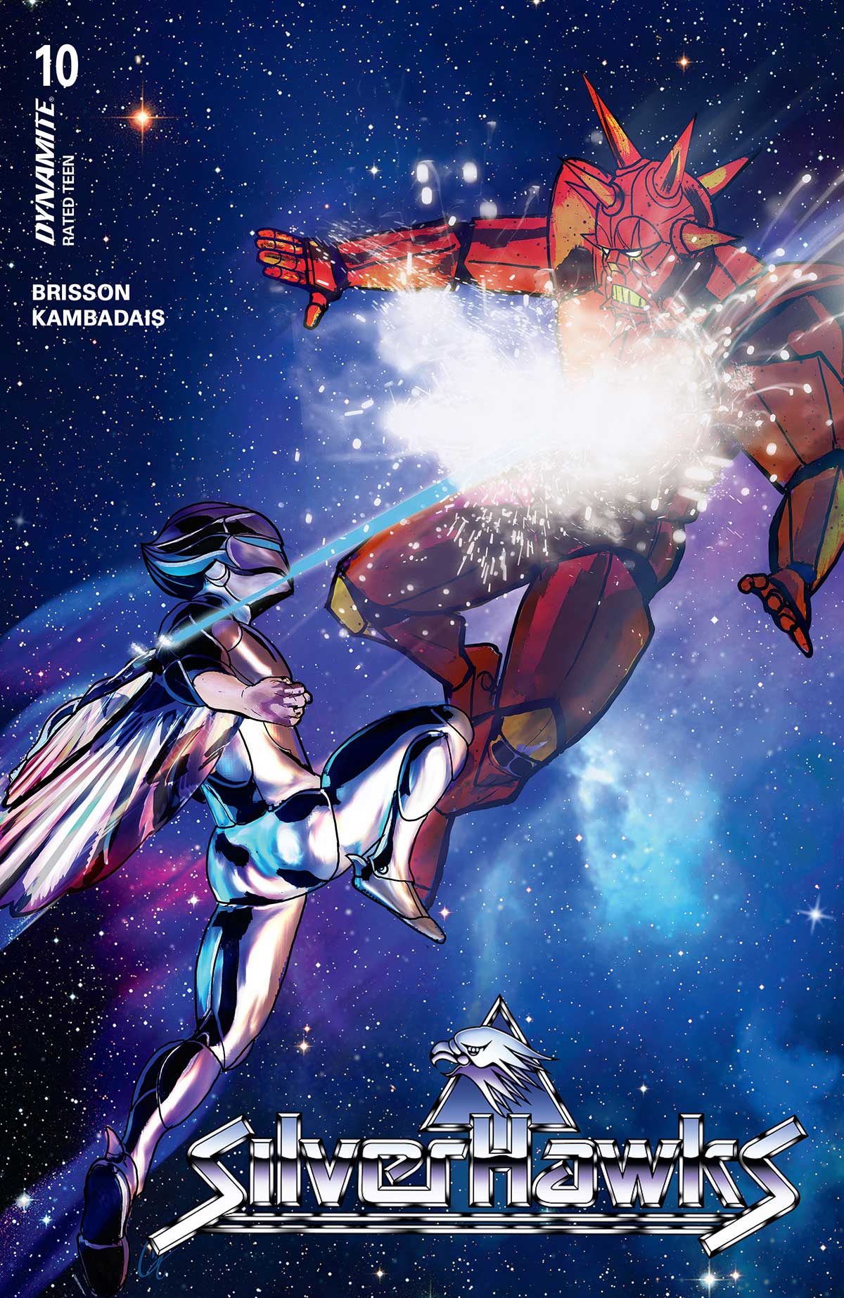 Famed four-color futurists ED BRISSON and GEORGE KAMBADAIS go all in on their final issue of SilverHawks — featuring potsweetening covers from JAE LEE & JUNE CHUNG, CAT STAGGS, ALESSANDRO RANALDI, DREW MOSS, GEORGE KAMBADAIS, MANIX, and DAVID COUSENS!