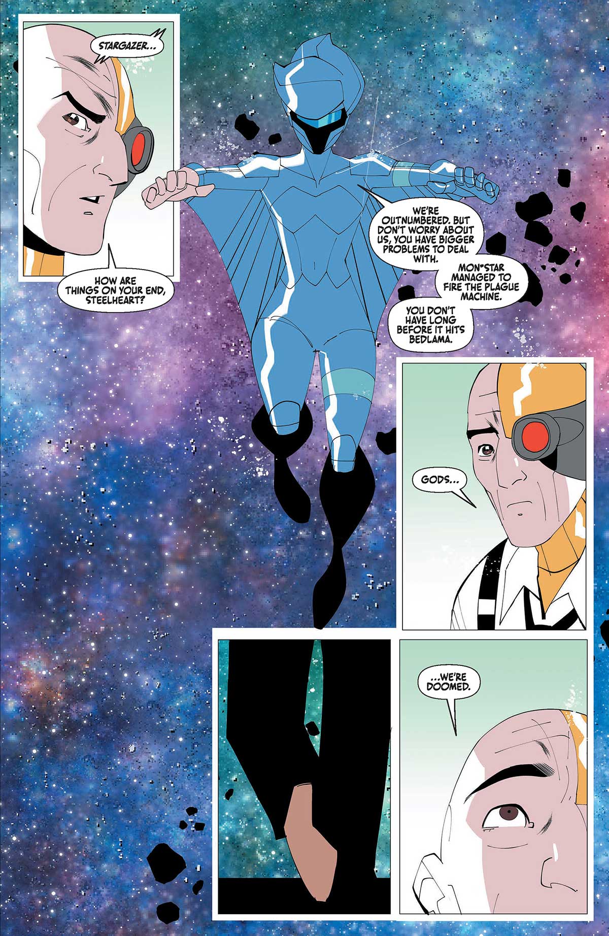 But even if they manage to succeed, Stargazer’s nemesis isn’t going to let bygones be bygones — and the last trick he has up his sleeve could end the SilverHawks for good!